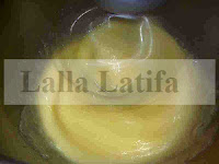 Préparer un sirop avec 100 gr d’eau et 250 gr de sucre en poudre jusqu’à 121°C.