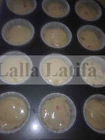 Mettre la pâte à cake dans une poche sans douille et remplir au 2/3 de la hauteur les caissettes déjà placées dans un moule à muffins.