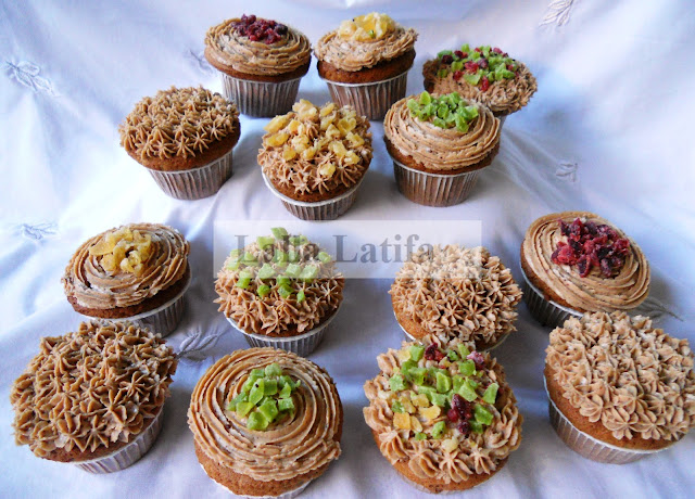 Couper les fruits séchés et décorer les cupcakes selon le gout