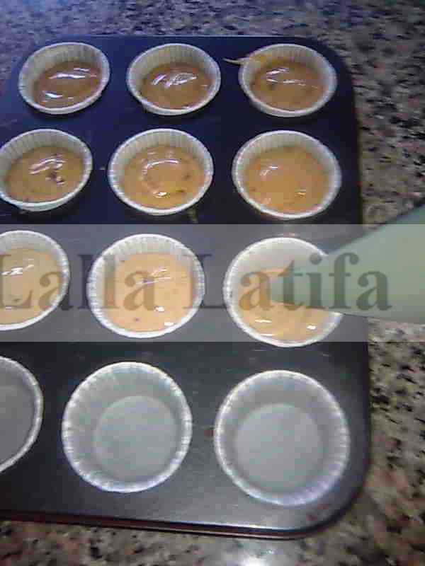 Mettre l’appareil dans une poche et remplir au 2/3 les caissettes déjà placées dans un moule à muffins