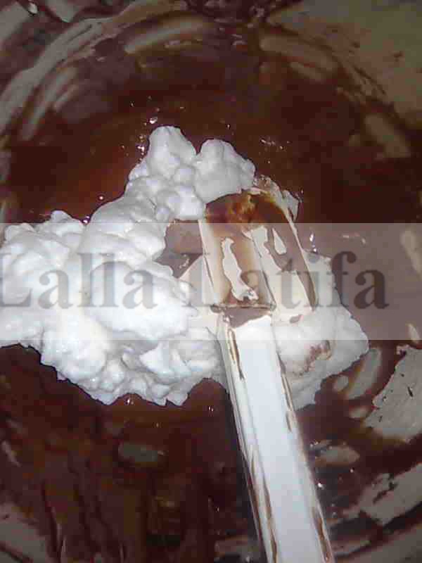 Incorporer avec la spatule les blancs montés en neige en tournant doucement.