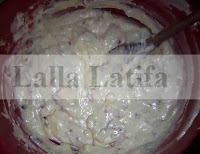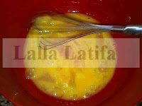 Dans un récipient, fouetter un peu les œufs et ajouter le lait et le beurre doux fondu tout en remuant.