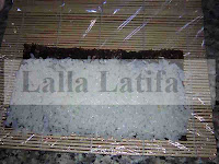 Sur le tapis à sushi, poser une ½ feuille d’algues.