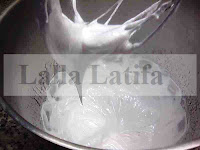 A la température 110° C, commencer à monter en neige à vitesse moyenne, les 50 gr des blancs d’œufs déjà placés dans un robot à fouet