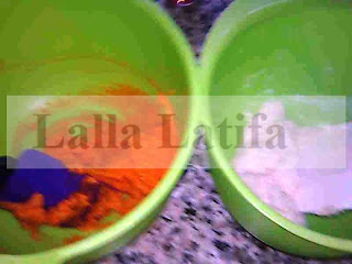 Diviser la meringue en deux parts égales pour les deux sortes de pâte orange et blanche