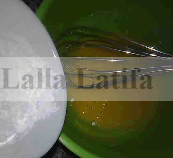 Mélanger au fouet dans un récipient les œufs et la fécule de mais.