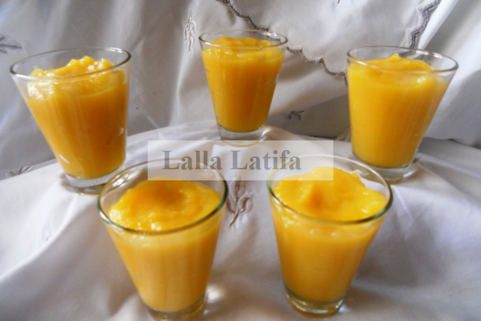 Mixer grossièrement la préparation, remplir des petits verres et mettre au frais avant de déguster