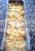 Refaire les même  couches et terminer par une couche de pain, le reste du mélange et enfin saupoudrer le fromage rouge