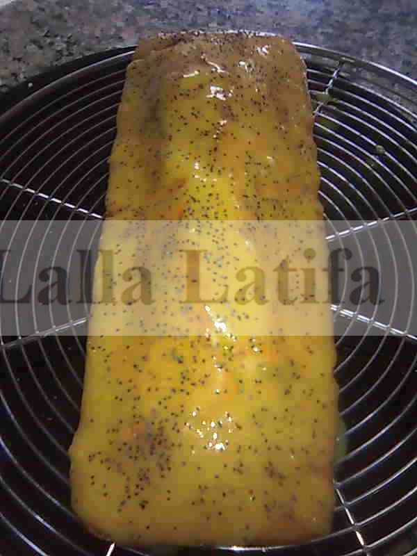 Verser le lemon curd sur le cake de telle sorte à le couvrir et saupoudrer un peu de graines de pavot.