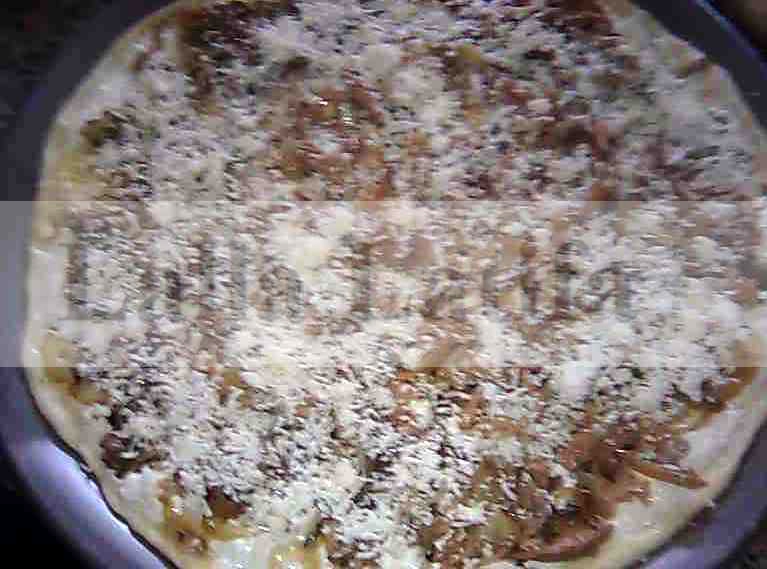 Ajouter une couche de l’oignon et champignons cuits et une couche de mozzarella râpée